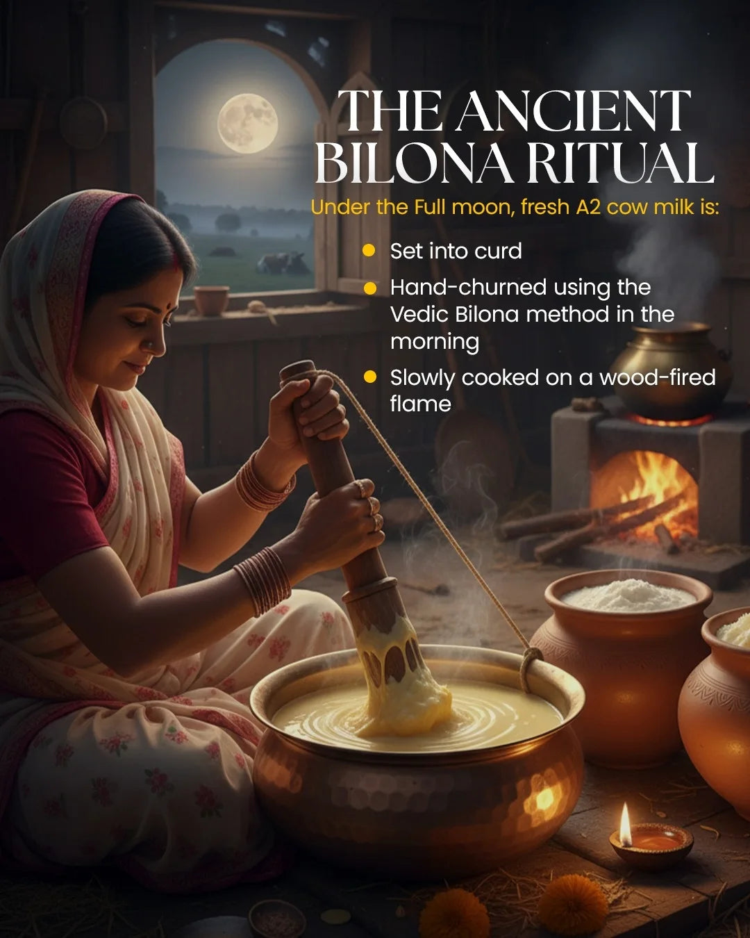 - Infused with the powerful Purnima energy, which is believed to enhance the spiritual and healing properties of food, this ghee is designed to bring about mental clarity, emotional peace, and physical well-being.